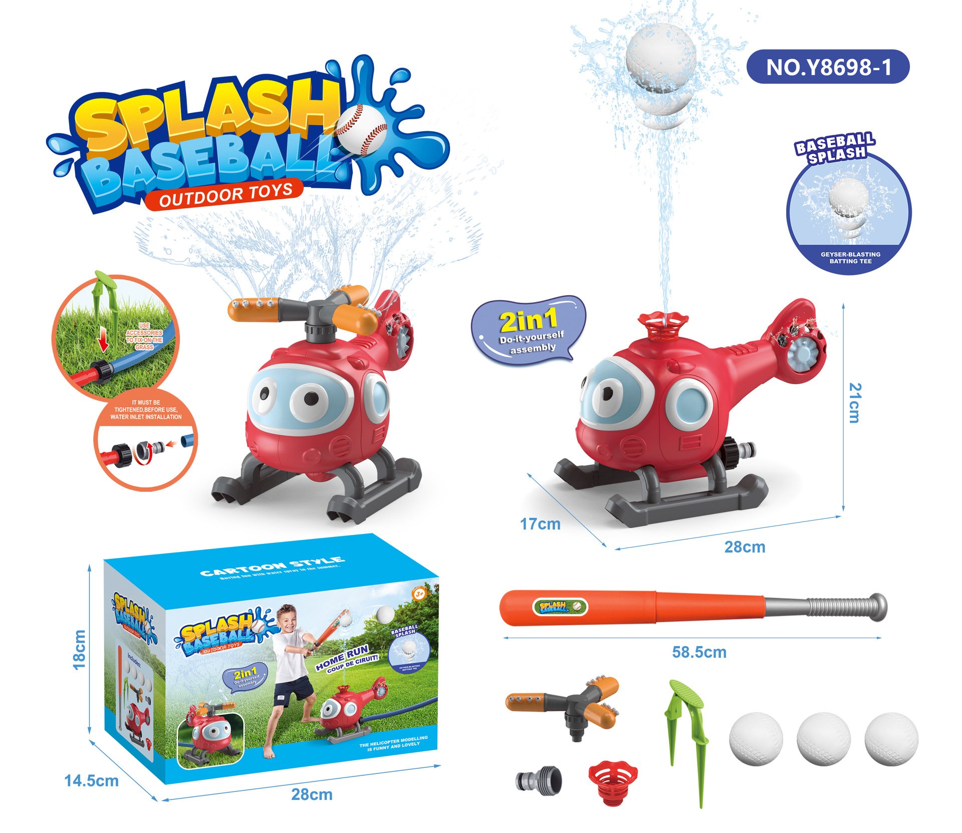 🚁💦 This 2-in-1 helicopter sprinkler sprays 360° fun for kids & pets—then transforms into an exciting water-jet T-ball game ⚾!
