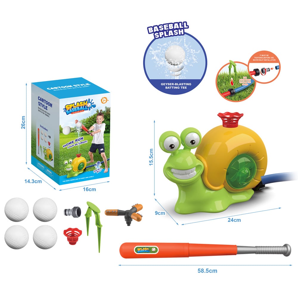 Baseball Game Method: Remove the sprinkler head and you will get much more fun as a tee ball game. One baseball bat and three baseballs are included. Turn on the faucet slowly, put the baseball on the water jet and hit it! Depending on the water pressure, it sprays water up to 8-15 feet