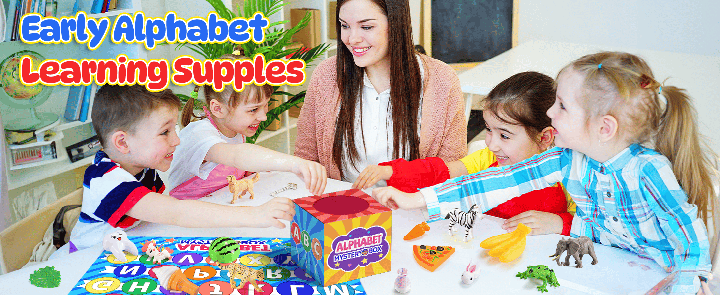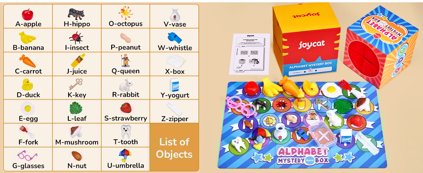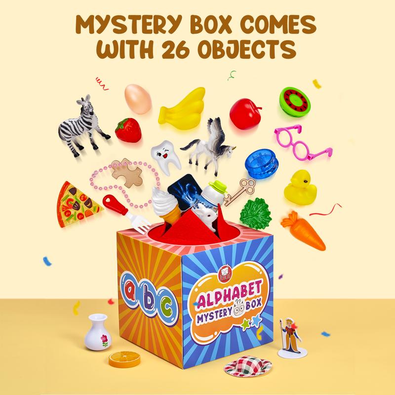 FUN TIMER ALPHABET MATCHING COMPETITION: Our mystery letter box comes with a timer hourglass, adding more fun to the letter recognition process. Children can compete against each other to see who can match the objects with the correct letters in the shortest time possible, making the activity challenging and exciting
