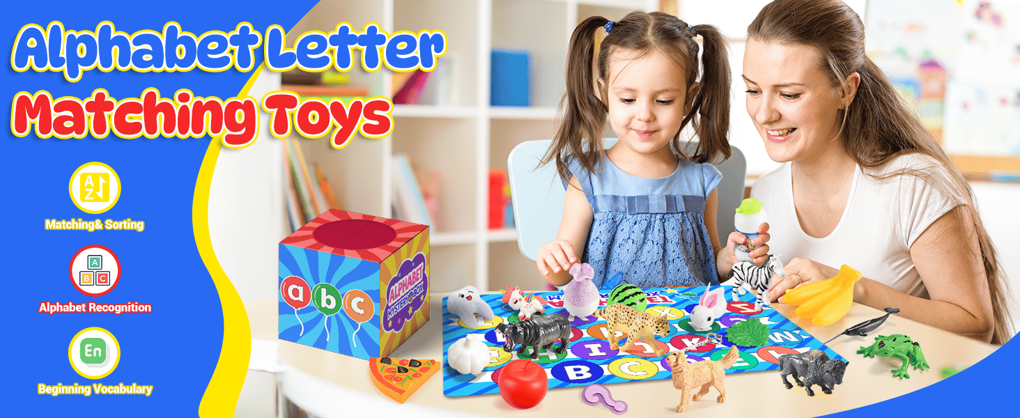 CAPTIVATING ATTENTION: The colorful mini figures immediately capture children's attention and encourage them to explore and recognize which objects correspond with each letter. From Apple A to Zebra Z, this game inspires their curiosity and fosters early alphabet recognition and spelling skills