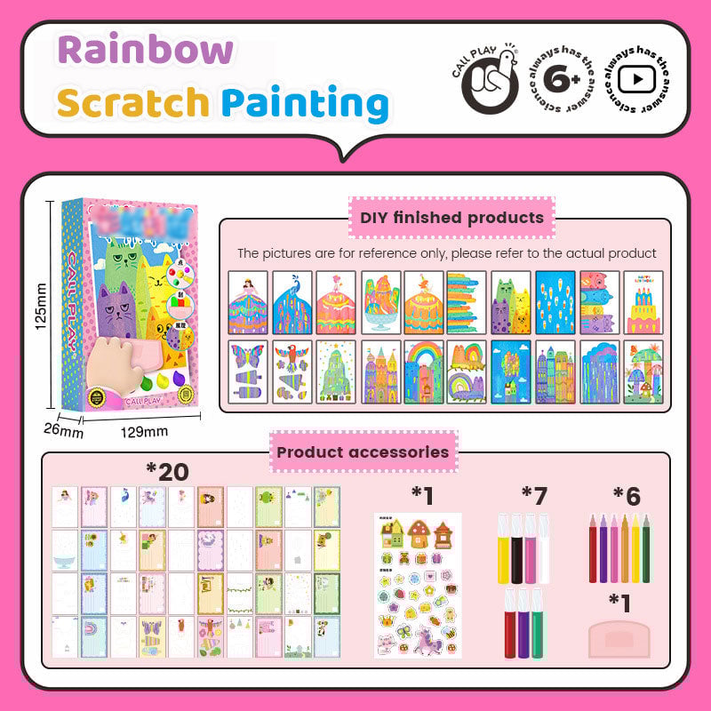 - 1 x DIY Christmas Rainbow Scratch Painting(20 sheets of drawing paper, 1 sticker, 7 paints, 6 watercolor pens, 1 rubber scraper)