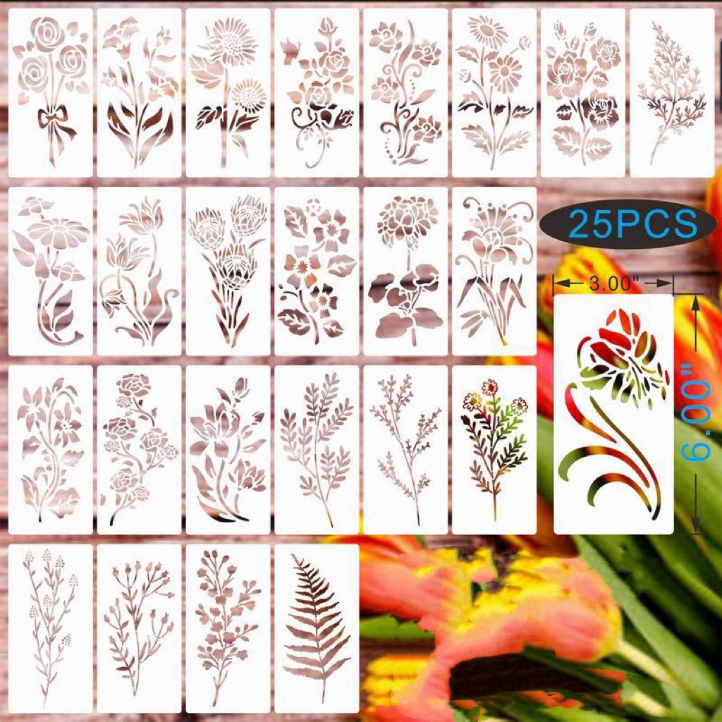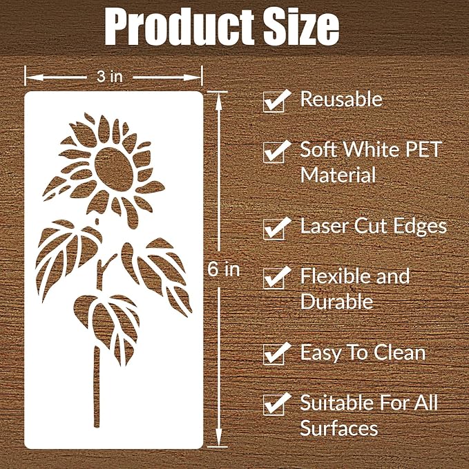 Crafted from durable PET material, our flower painting stencils and flower templates on wood measure 3x6 inches